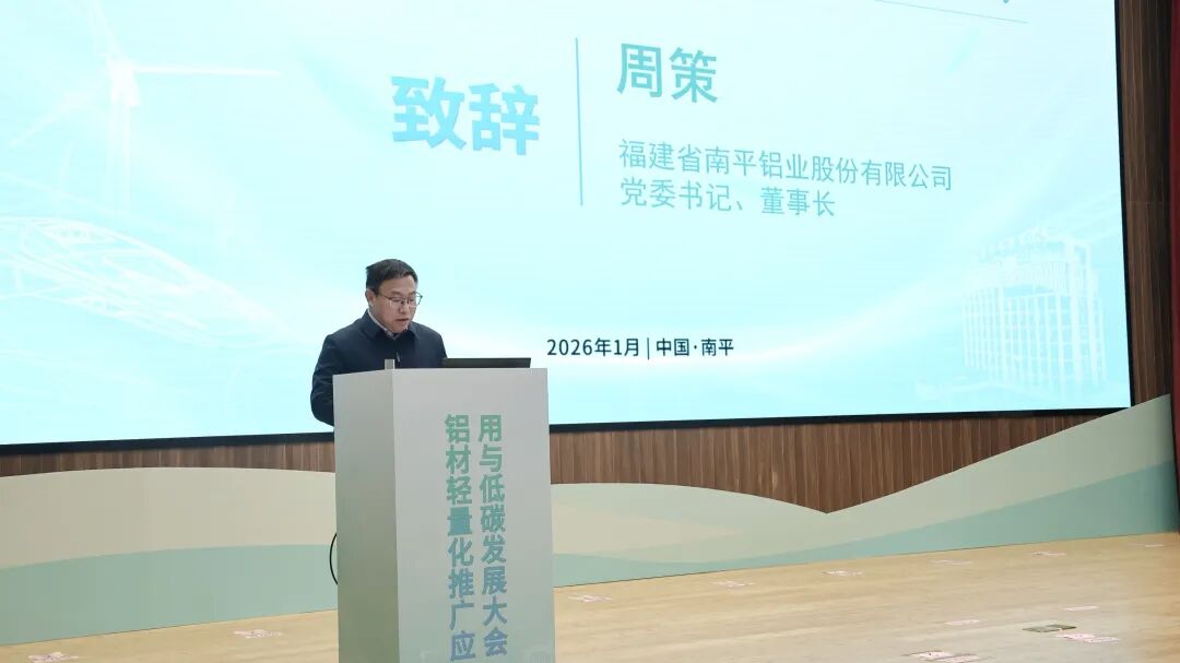 福建省南平铝业股份有限公司党委书记、董事长周策在致辞中表示,轻量化是实现节能降耗、减少碳排放的关键技术路径,正以前所未有的力度推动着制造业、交通运输业乃至整个经济结构的深刻变革。铝具有优异的强度重量比、可循环再生等特性,是践行轻量化、助力低碳转型的“绿色金属”和理想材料。南平铝业始终致力于铝材的科技创新与绿色制造,积极探索铝材在新能源汽车、轨道交通、智能装备等领域的轻量化应用。不仅关注材料本身的性能提升,更致力于推动全生命周期碳足迹管理,从绿色能源使用、再生铝保级利用、工艺节能改造到产品循环设计,全方位践行低碳发展理念。