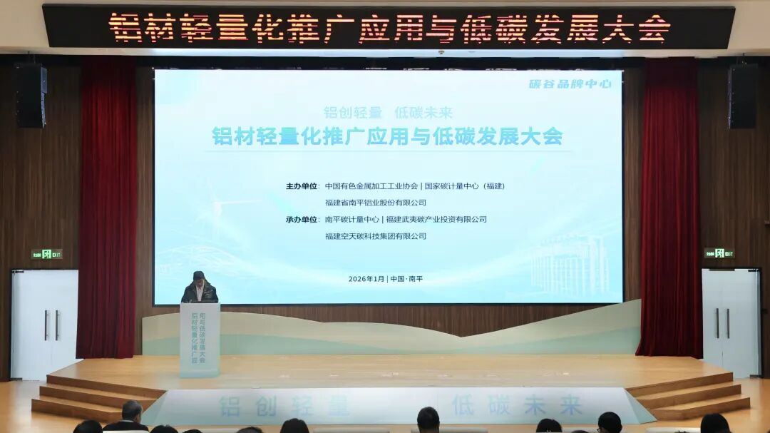 1月23日,由中国有色金属加工工业协会、国家碳计量中心(福建)和福建省南平铝业股份有限公司联合主办的铝材轻量化推广应用与低碳发展大会在福建南平召开。中国有色金属工业协会党委副书记、中国有色金属加工工业协会理事长范顺科,南平市人民政府副市长黄桂诚,中国汽车工业协会总工程师叶盛基,南平工业园区管委会、南平碳计量中心主任李敏飞,福建省南平铝业股份有限公司党委书记、董事长周策在开幕式上致辞。工业和信息化部原材料工业司原副司长、中国电子信息产业发展研究院原党委书记宋显珠,中国有色金属工业协会铝业分会副理事长兼秘书长李德峰,中国有色金属加工工业协会秘书长靳海明,和来自魏桥集团、创新集团、南山铝业、明泰铝业、象屿股份、中铝瑞闽、华峰铝业、鼎胜新材、常铝股份、厦顺铝箔、安徽金誉、闽发铝业、祥鑫股份、齐力澳美、固美金属、国轩象铝、安泰新能源、海德鲁、海亮股份、信发集团、中色科技、江顺科技等相关单位200余人出席会议。南平工业园区管委会、南平碳计量中心主任助理张曦,立中集团联合创始人臧立中分别主持会议。